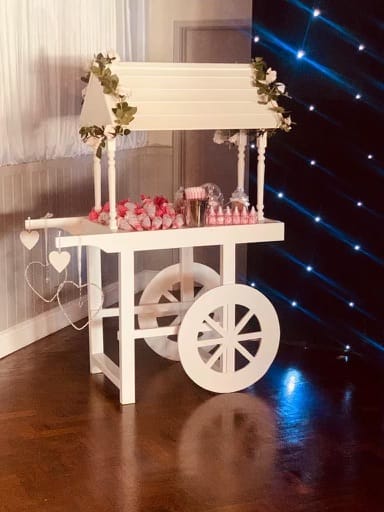 Our beautiful, hand crafted, sweet cart comes in a brilliant white with traditional wagon wheels and an attractive combination of clear storage shows off the sweeties at their very best. Whether your event has a theme or special occasion, we are sure to provide a sweet cart that will wow your guests.